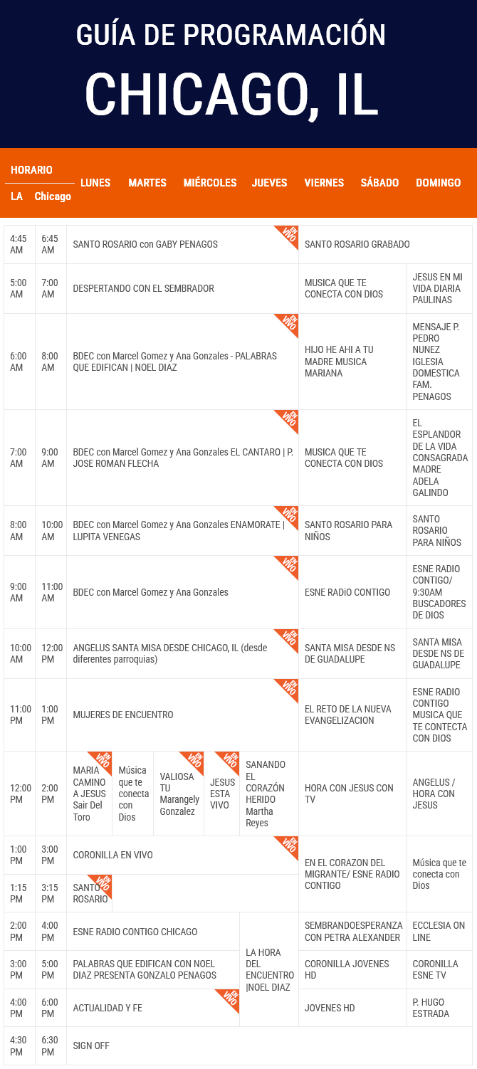 | 2:00 PM | 4:00 PM | ESNE RADIO CONTIGO CHICAGO |